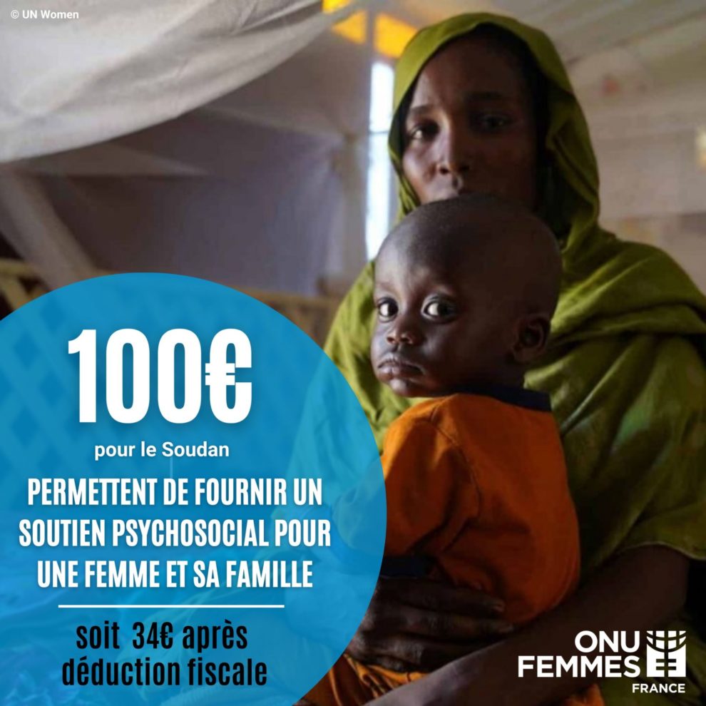 Avec un don de 100 € soit 34 € après déduction fiscale, vous permettez de fournir un soutien psychosocial pour une femme et sa famille vivant au Soudan.