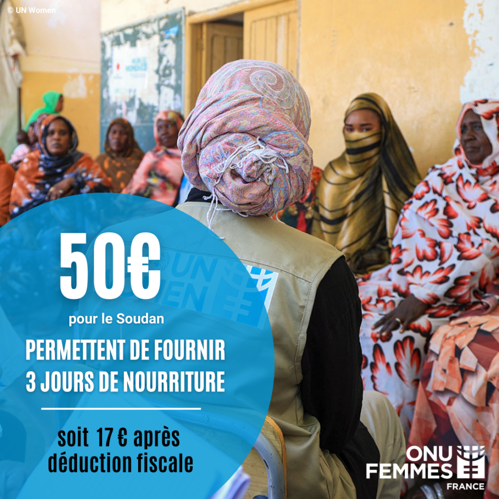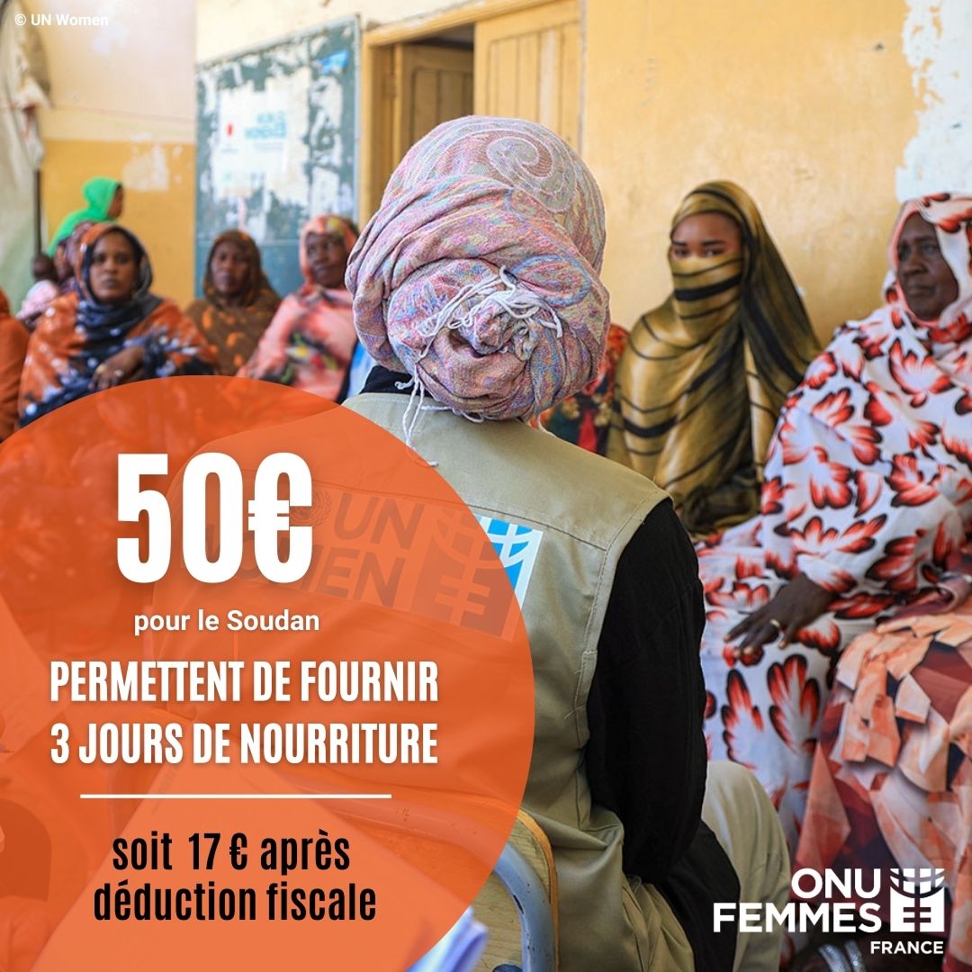 Avec un don de 50 € soit 17 euros après déduction fiscale, vous permettez de fournir 3 jours de nourriture à des femmes vivant au Soudan.
