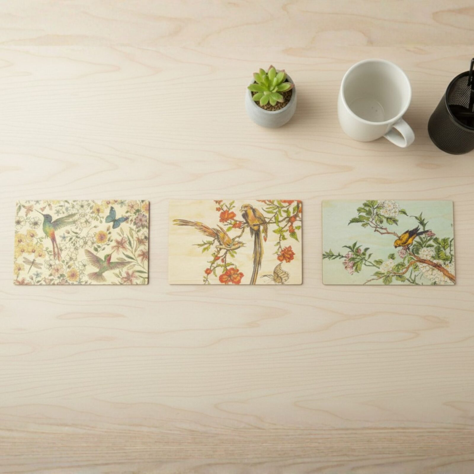 Lot de 3 cartes en bois oiseaux
