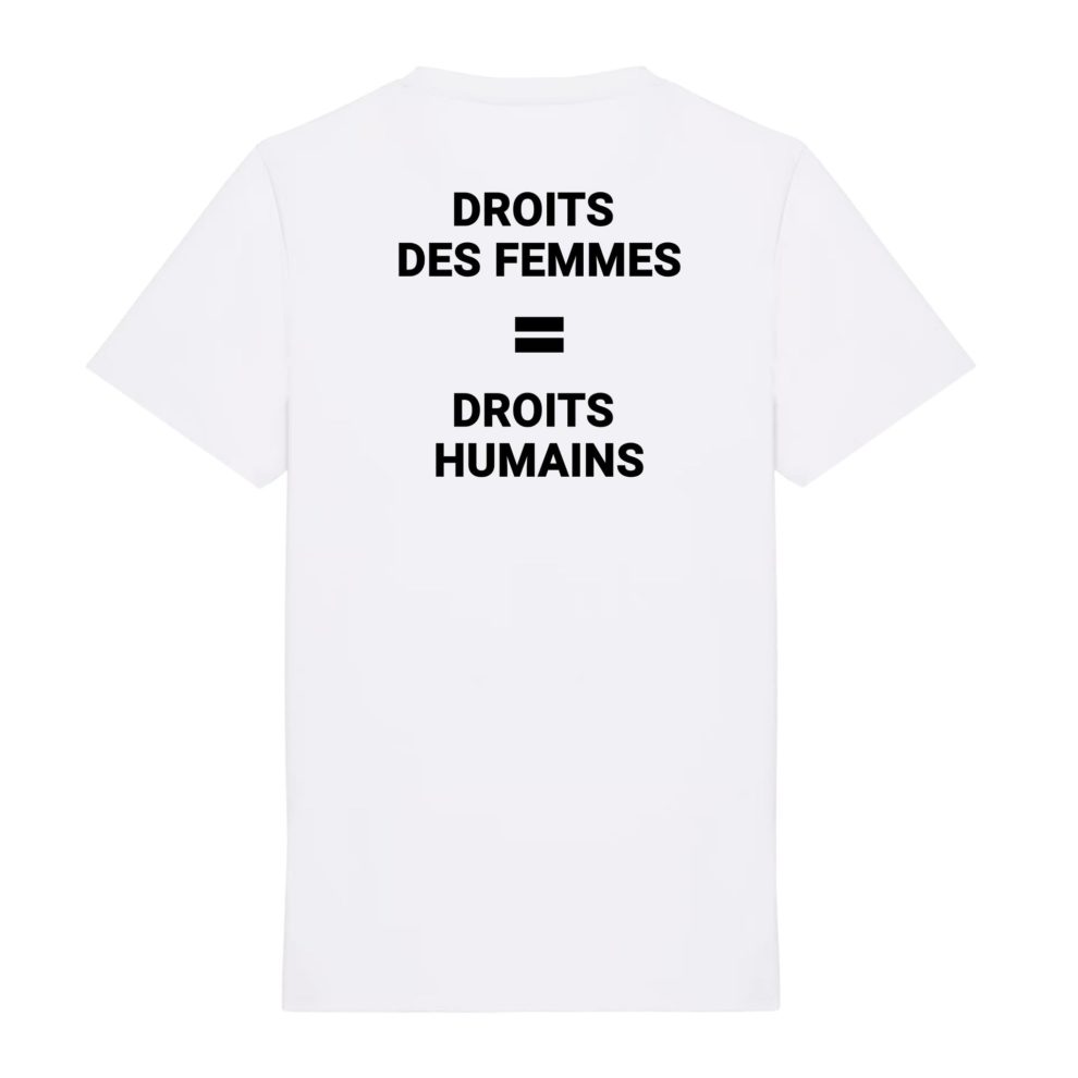 Affichez fièrement un message universel avec le t-shirt « Droits des Femmes = Droits Humains » d’ONU Femmes France : une déclaration essentielle rappelant que l’égalité de genre est au cœur des droits humains.